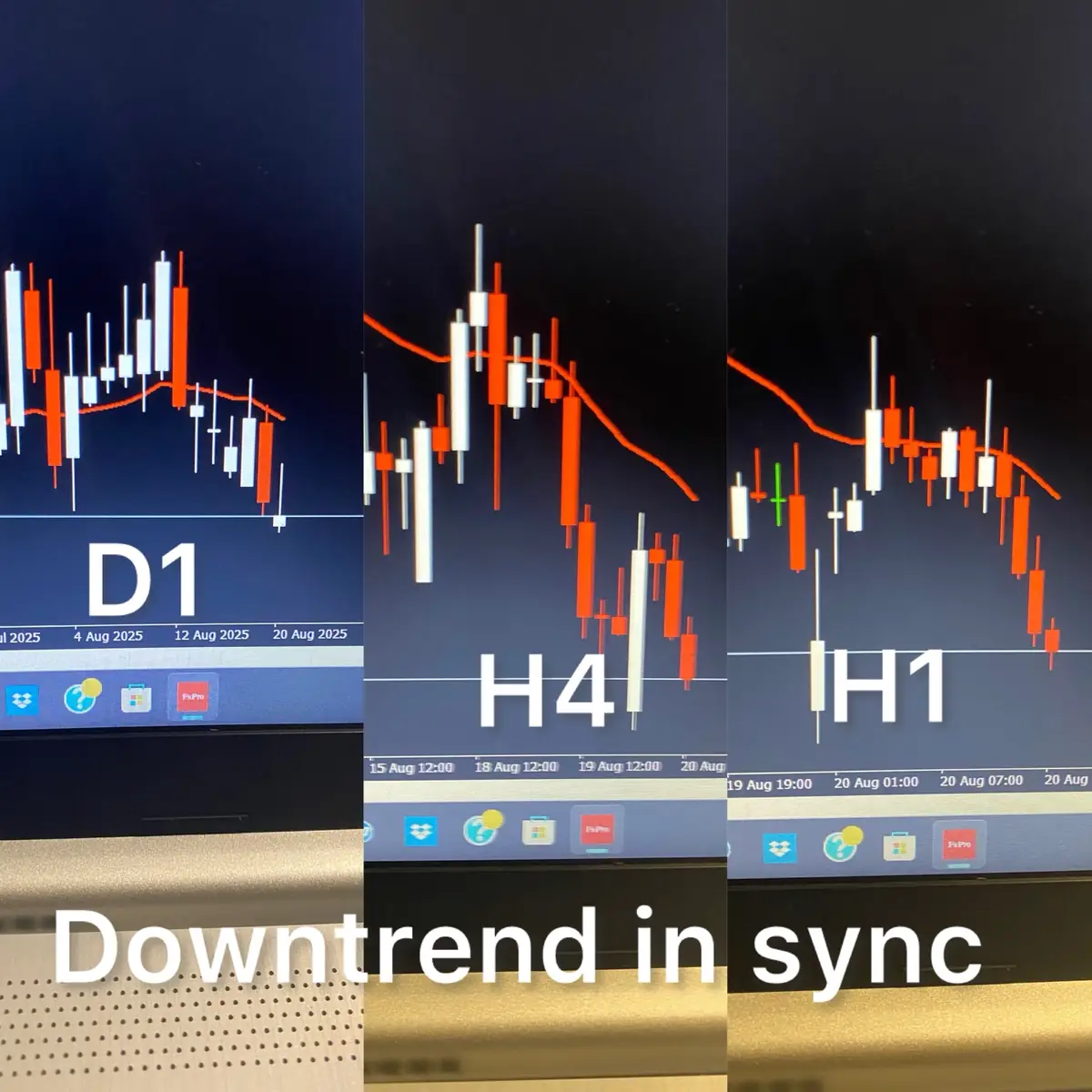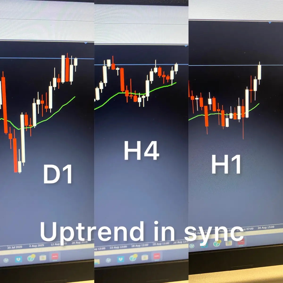 Visual trend alignment of an EMA across 3 timeframes (or any 3 TFs).